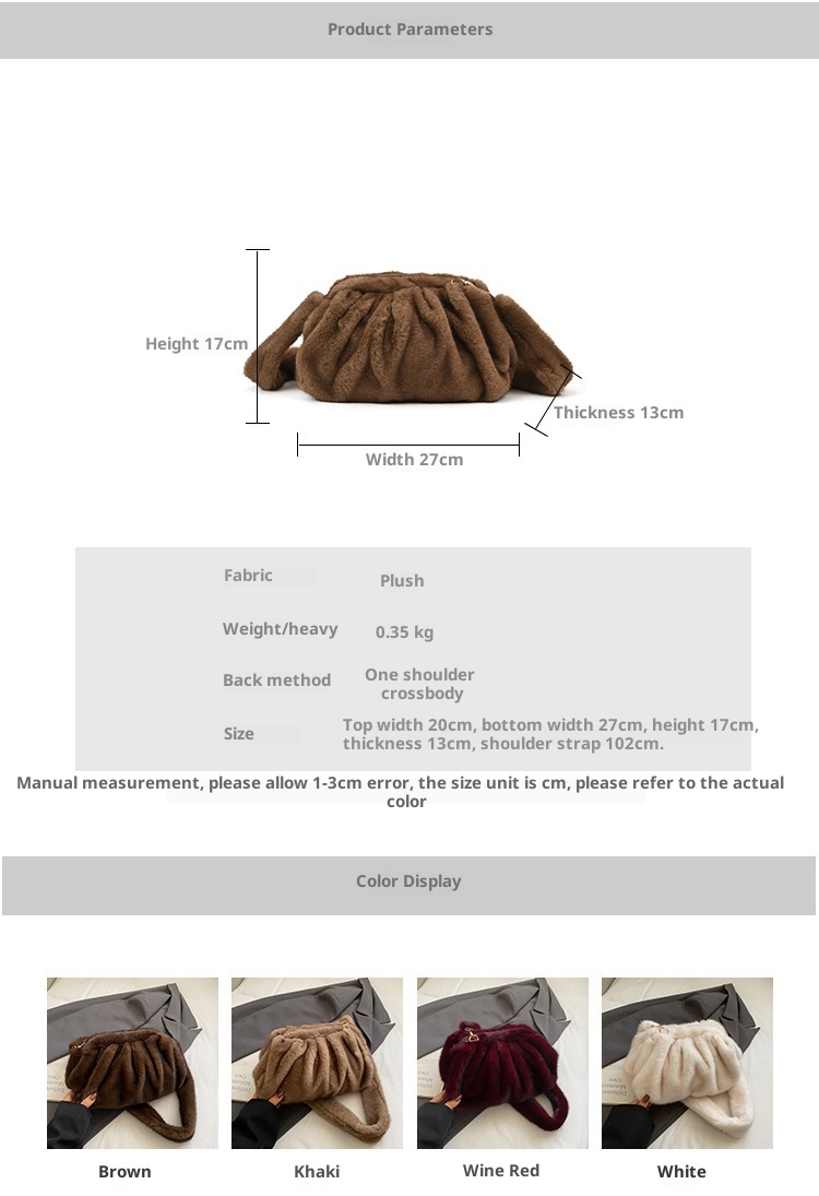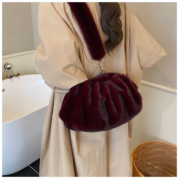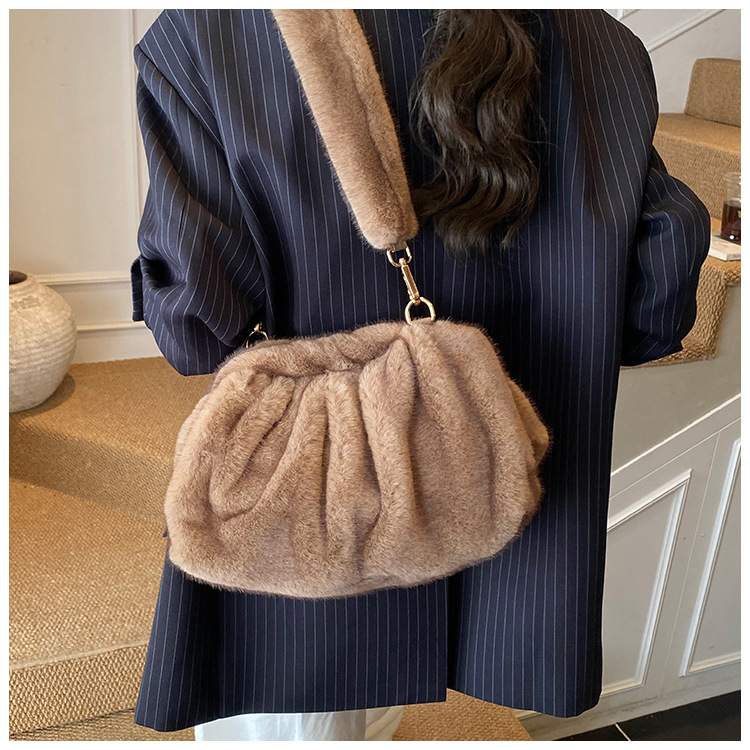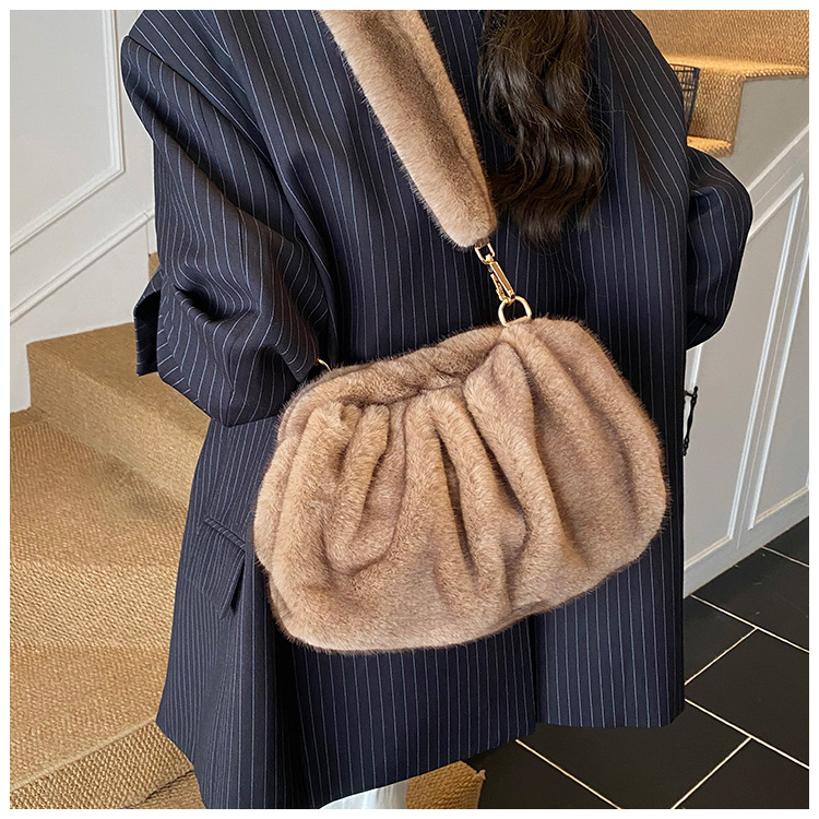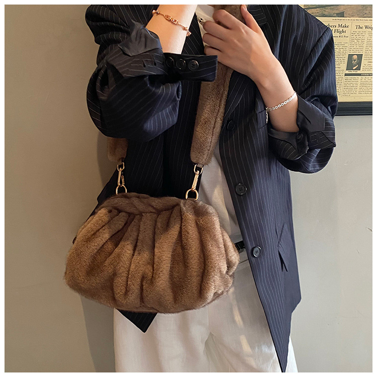 Pleated Cloud Women's Fashion Handbag Furry Bag Fashion